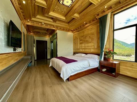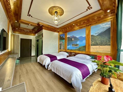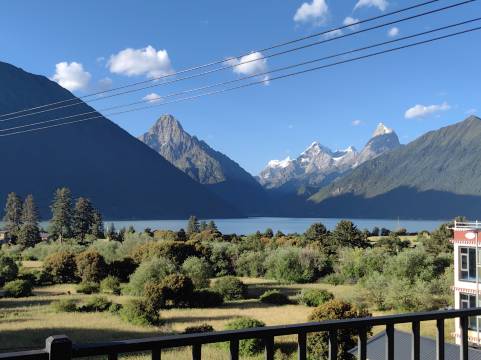 房间非常的不错,藏式风格,房间里面从窗口就可以看到雪山和巴松措湖,风景一览无余。非常值得推荐。