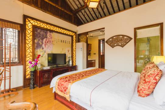 房间面积够用,卫生状况良好,位于景区内部,一出门就是景区中心,游玩方便,旁边饮食购物都很方便,老板娘很热情,离店了还赠送当地特产阿婆饼。