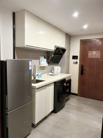 房间在商场公寓楼上,楼下可以直接到地铁口,要求出行便利的选择这里挺不错的,住的房间在12楼,落地窗采光通风挺好,房间也没什么异味,卫生干净,有沙发冰箱洗衣机设施比较齐全,微信办理入住手续简单便捷,客服微信回复及时,退房了也有地方寄存行李~