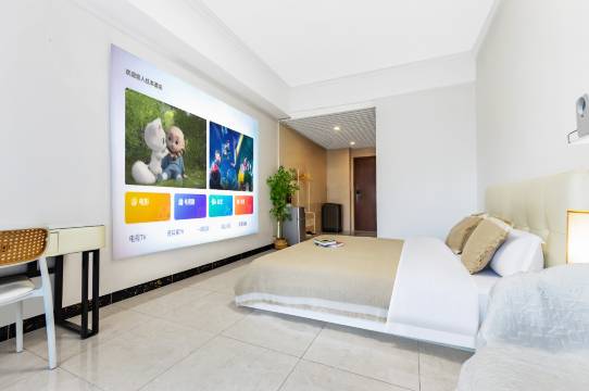整体的布置就像温馨的家。 床特别的柔软舒适,每次来这里都睡的特别好。 投影设施也很好,可以看所有vip电影。