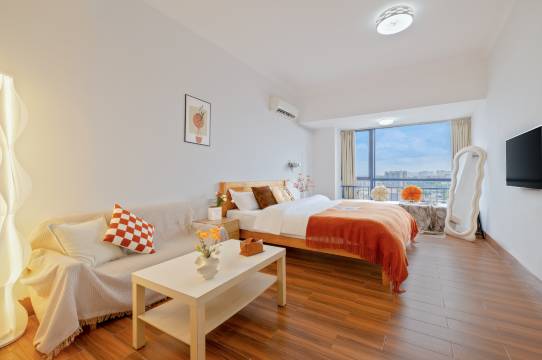 民宿在地铁站口,出行方便,落地窗,房间比酒店的大,还有冰箱洗衣机,私密性好,投影还有会员挺好得,