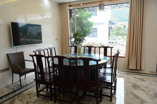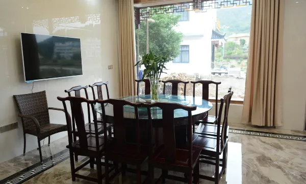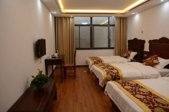 客栈设有各类房型,徽派建筑设计风格,床头全实木,客房内家具全是红木家具,高档加厚床垫,中央空调,无线上网。