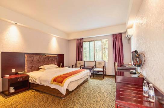 修文龙润森林酒店内部装饰将中国古典元素与现代设计理念相融合,摆设以中式木桌木椅,古韵浓郁;客房布置舒适宽敞、色调淡雅;设有多款房型,房内配置空调、国内长途电话、24小时热水、独立卫浴等设施,完善齐全。
