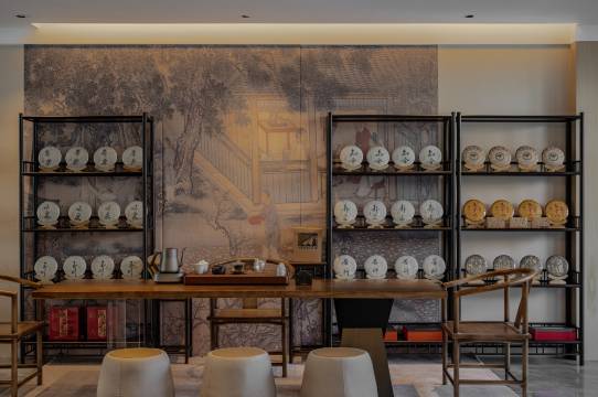 公区有沙发、钢琴,还有专门的品茶角