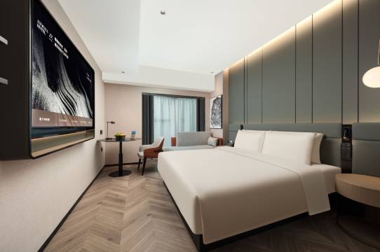 房间设施更是无可挑剔!江景房视野绝了,整面落地窗正对着湘江,白天看橘子洲绿意盎然,晚上赏两岸灯火璀璨,夜景美到舍不得关灯。床品是定制丝涟床垫,柔软度刚好,配上纯棉床品,一整晚深度睡眠没醒过;智能马桶、65寸高清投屏、迷你吧的软饮免费喝,还有安心杯、酒精棉片这些贴心小物件,。