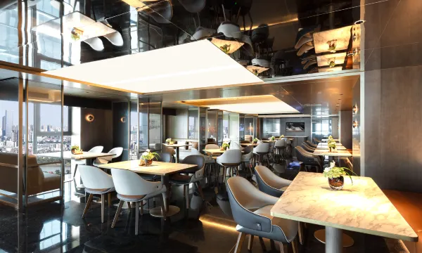 夸爆入住效率,电子证办理超便捷,前台小姐姐热情又专业,1分钟搞定入住,还贴心送上热茶和周边美食攻略,连行李都主动帮忙送到电梯口。酒店在48楼高空大堂,专属直梯直达,避开嘈杂人群,一进门就被淡淡的香氛和千本藏书的“竹居”治愈,艺术感拉满。
