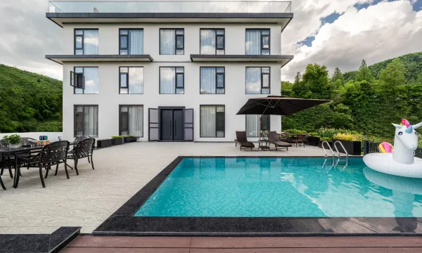 民宿房间配置高,每一间都精心布置,设施完善,包括休闲娱乐区、餐厅、儿童专属娱乐区、露天游泳池,让您在旅途中感受到家一般的温馨与舒适。民宿设有私家鱼塘,为您提供专业的钓鱼工具,可以一边欣赏湖景,一边感受垂钓的乐趣。除了垂钓还有其他活动可以让您尽情享受,竹林手工挖笋体验,新鲜的春笋还带着泥土的清香,剥开外皮,鲜嫩出汁~还有山景私汤温泉,享受山顶观景视野,满眼都是自然美景,充氧量100%,满满的森林疗愈感!这里也是退伍军人用心雕琢的温馨居所,老板也是一名退伍军人,每一处都透露着对过往的致敬与未来的憧憬,民宿自带军旅情怀buff,专门为战友们准备了专属折扣,和当年的战友一起住进民宿的温馨房间,在民宿的庭院里追忆热血青春,这样的旅行简直意义满分!客房床品:有机真豆面料采用可可绒,柔软细腻,冬日里的小太阳,填充采用10%的大豆纤维,大豆纤维的特点:1.健康环保,采用天然的植物纤维材料制造,不含有害物质对人体无害,同时对环境也友好。2.舒适性,大豆纤维被具有柔软性好,亲肤透气,有良好的保温性能等特点,能够给人带来温馨舒适的睡棉体验,背面烫大豆图案胶印四周暗合假立体,可可绒面料与大豆纤维的填充组合,让你的冬日不再寒冷。让久居城市的你,感受乡村美好的同时,身体也得到切实的放松,套房房型还具备沙发床,适合家庭出游。位于湖州市安吉西鹤村鹤岭脚自然村070号,地理位置优越,周边景点众多。距离中国大竹海、余村仅需14分钟车程。且周边环绕着云上草原国际山地旅游度假区、高空玻璃漂流、峡谷漂流、深溪漂流、helloKitty乐园以及江南天池滑雪胜地等众多热门景点。距离这些知名景区仅约30分钟车程。这里既是家庭亲子游的好选择,也是度假休闲、情侣蜜月的理想之地。让您远离城市的喧嚣,沉浸在自然的怀抱中,尽情享受大自然的恩赐。在院内,您可以畅游无边泳池,参与亲子游乐项目,或与亲朋好友一同享受聚会烧烤与棋牌K歌的欢乐时光。民宿内全系标配星级酒店用品用具,包括地暖、中央空调以及豪华落地窗。我们提供标准停车位8个,充电桩4组,为您的出行提供便利。 家外家民宿致力于为您提供管家式的贴心服务,让您在旅途中无忧无虑。让我们一起在这里,感受大自然的魅力,享受一段难忘的旅程。