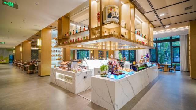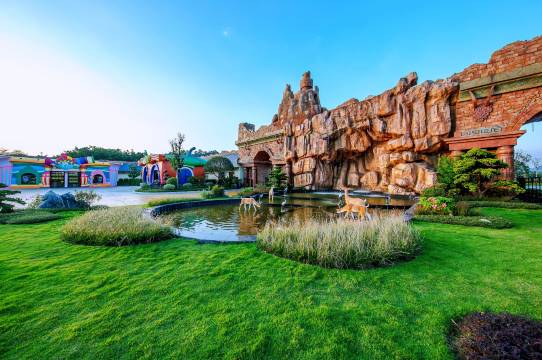 整体感觉不错,适合一家老小出行,小的去奇妙世界,可以玩很多免费的游乐设施,老人也可以在里边散步,然后去泡个温泉解乏。晚上有非遗表演和烟花秀,小孩子很喜欢。下次可以夏天的时候来体验水上乐园。自助餐的种类挺多,出品中规中矩吧,对得起这个价格。
