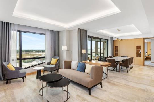 万象丽林希尔顿逸林位置绝佳,地处市中心,出行便利。房间宽敞整洁、安静舒适,设施新且齐全。服务热情专业,办理高效,早餐丰富可口,屋顶泳池视野好。整体体验稳定靠谱,符合国际品牌水准,商务出差与休闲度假都很合适,值得推荐。