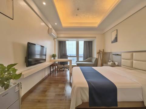 房间住的很舒服,1.8的大床软硬度刚好合适,房间卫生打扫的也很干净,还有电磁炉微波炉这些设备,很适合短袖或者小长住,前台小哥哥办理入住也很快,服务态度热情,房间楼层也很高,景色特别好,楼下交通比较便利,出行很方便