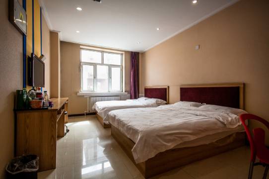 宾馆内饰时尚新颖,客房布置干净齐整、舒适通风;房型种类多样,房内配置暖气、24小时热水、独立卫浴等设施,完善齐全。