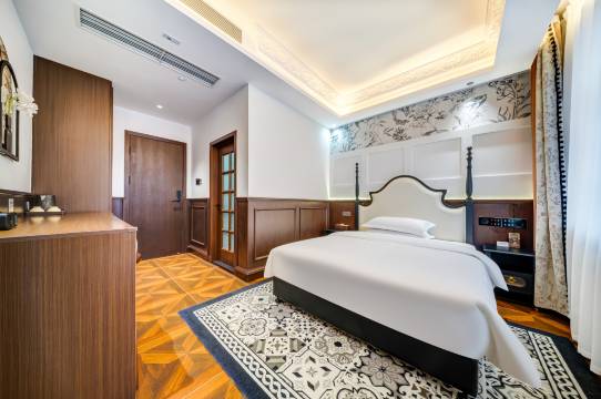 非常好的住宿体验。酒店地理位置优越,门口就是中苏金街,出行方便。酒店法式装修风格,古朴庄重典雅,房间设施现代、齐全、智能,干净卫生,晚上睡眠环境安静,服务人员和蔼可亲,还免费接站,非常棒的住宿体验,错峰出游性价比超预期!