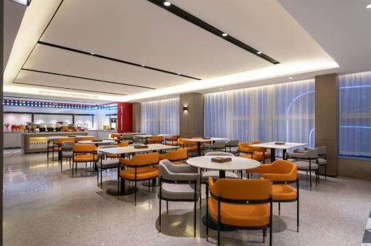 餐饮方面,早餐品种丰富,一直持续到十点多,满足了不同口味的客人。晚上还有夜宵,免费享用,很适合晚上应酬后回酒店人员。周边餐饮娱乐非常便捷。