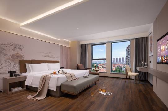 房间宽敞明亮干净卫生,还有精美小零食,前台小姐姐很热情,周边有大商场,和美景,值得推荐的一家酒店!