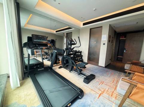 酒店是2024年开业的,设施都挺新的,健身房、洗衣房都有,房间还配备了小冰箱,前台服务也非常好,下次还来