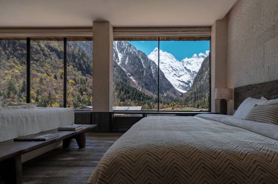 还得是野语,体验非常好,毕竟价位摆在那里,景是确实好,正对着日照金山,早餐也不错,还有下午茶,包含的服务齐全