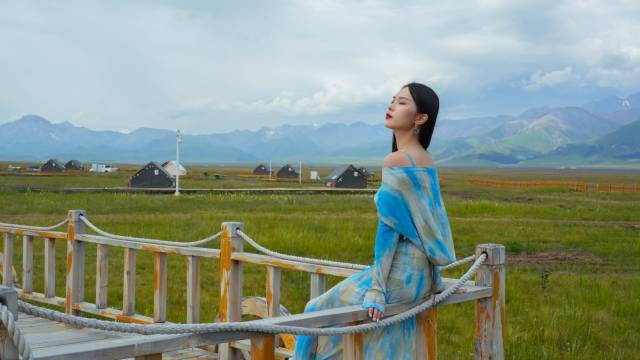 帐篷外平台区域就可以看到赛里木湖景和雪山,非常漂亮。日出日落观赏也是绝佳位置。