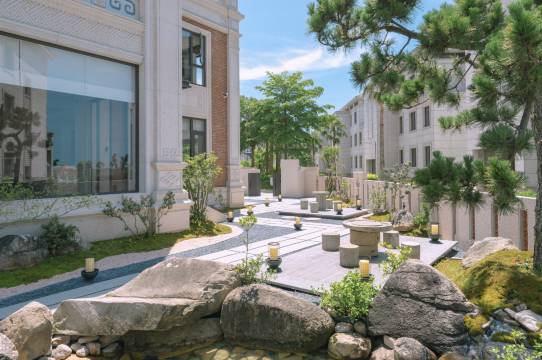民宿步行至海滩近在咫尺,整体装修风格是简约高级的侘寂风,公共空间充满艺术设计感。庭院为充满古味的中式庭院,公共阳台直面大海。我们想打造的空间不仅仅是为客人提供住宿,更是想提供一个可以远离城市,让人完全放松下来的度假空间。
