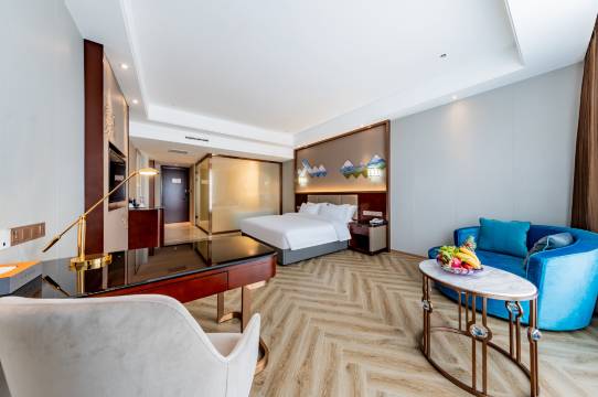 大厅很气派,设施齐全,卫生干净整洁,前台服务态度很好,还给送了欢迎水果,自助早餐也很好吃,菜品种类挺多。出差住的挺方便!