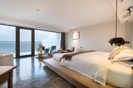 环境优美,像圣托里尼的度假区,270度还景房间,视觉效果杠杠滴,房内干净卫生,摆件很有创意,听着海浪声,一切烦恼被海浪带走。服务非常热情周到,下次还会带家人一起来度假⛱️