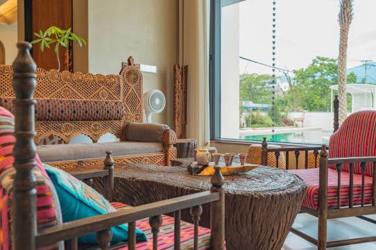 民宿设计的是泰国风格,非常有特色,细节做的非常满意!很多软装的饰品能够看出都用了很多心思!!民宿老板帮助我们升级了房间,很干净,阳台纱窗的设计,还有落地窗下面透风防蚊设计真是细节到位。阿姨做的早餐也很可口,吃的非常舒服…