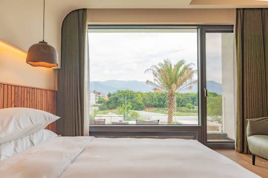 房间和其他人点评说的一模一样,落地窗正对远山,原木家具质感满分,床品柔软得像睡在云里,连洗手间的备品都是小众植物品牌,细节控狂喜!傍晚坐在露台看山雾缭绕,所有烦恼都被治愈了~