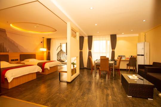 房间比较大,环境不错,房型也比较全,家庭房很实用,卫生也很好,楼下有小超市,很方便,附近的饭店也很多。