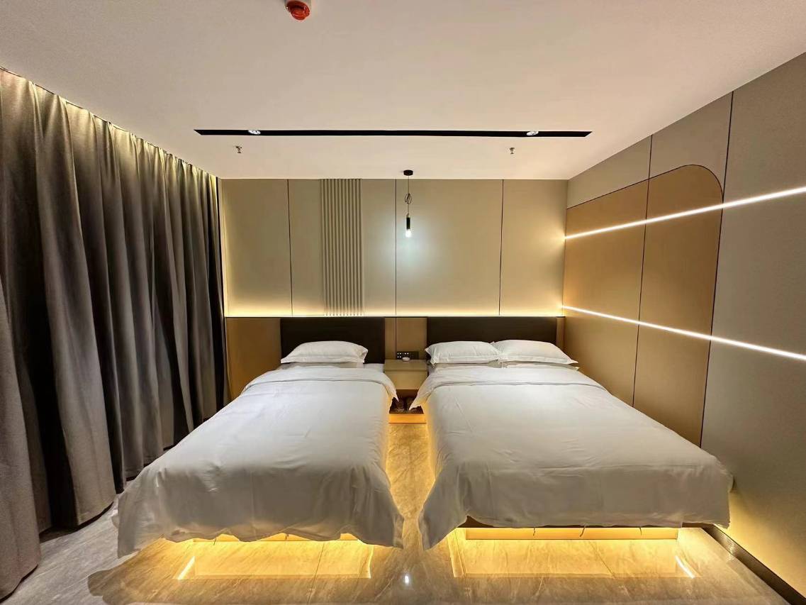 和朋友出游,一共三家人,订了三个标间,房间大床品舒服,电竞酒店装修也挺有意思。网速超快,楼下有早餐店,左边走700米有一条美食街,东北铁锅炖好吃。前台美女热情有礼貌