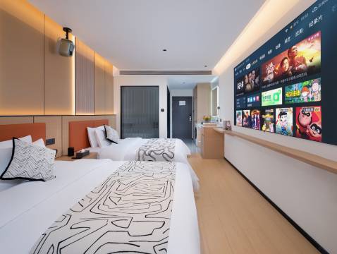 旅游真实体验,性价很高的酒店,房间全屋智能控制,非常方便卫生干净整洁,设施很齐全,一次性用品也很多,还可以免费停车,停完车坐电梯就到酒店了,酒店离火车站很近,打车10多块钱就到了,投影清晰音效好,100寸的投影幕布,躺床上看电影很爽,超级舒服,而且都有VIP免费看!