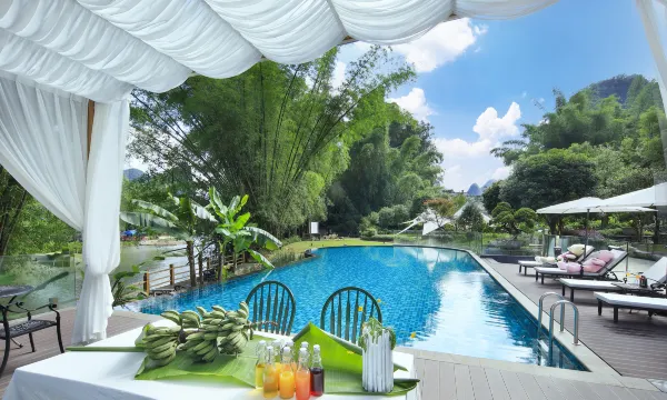 酒店,一处隐匿于阳朔十里画廊景区内的静谧居所,让每一位宾客尽享自然之美与诗意生活。酒店坐落于举世闻名的十里画廊,遇龙河宛如一条银带般从旁穿流而过,为这片土地增添了几分灵动与生机。 房间内设有舒适浴缸和观景阳台,让您在沐浴之余,亦能沉醉于满眼绿意的山林氧吧之中。躺在阳台上,眼前展开的是一幅喀斯特地貌的绝美画卷,云雾缭绕,仿佛置身于仙境之中。河水缓缓流过,带来天籁般的鸟鸣和清风拂面的惬意。 酒店周边景点众多,除了十里画廊遇龙河景区外,还有工农桥、大榕树景区、刘三姐对歌台、蝴蝶泉景区和千古情景区等,让您在享受宁静的同时,也能轻松探索阳朔的无限魅力。 此外,酒店还提供了丰富的配套设施。儿童游乐场、120㎡的数云泳池、2000㎡的花园、水墨画露台、SPA、天幕电影等,让您的度假时光更加丰富多彩。酒店还提供露营下午茶、儿童嗨皮乐园等活动,让您的亲子时光更加难忘。酒店,山景、河景、花园三景合一,在这里,您可以畅享遇龙河美景,置身于桂林山水之中,感受古老的喀斯特地貌带来的山水画般风景。无论是躺着、坐着还是走着,都能与美景不期而遇,让您的度假之旅成为一段难忘的回忆。