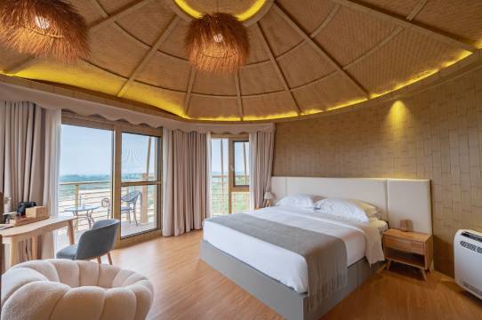 这个酒店太适合度假放松了,带着老人和孩子过来,早上醒来就像住在森林里,氧气非常足,很舒服,床品也很给力,睡了个好觉。这个双层的玲珑栖是个特别的体验,孩子们都很开心。