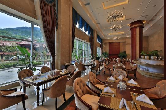 酒店环境很好,靠山一面很安静。停车场有地面也有地下挺大的。工作人员服务很好,早餐也还不错。离景区也近,走路20来分钟就到了。