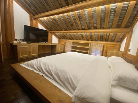 古色古香的院子,俩小只单独一层楼,做作业,睡觉的地儿都有了,阁楼瓦片屋顶夏天应该很凉快,冬天夜晚有点冷,但适合我们,柴火炉一烧,温暖如春。老板人很好,提供🔥盆烧烤,厨房使用,自己动手做饭,顿顿吃撑。
