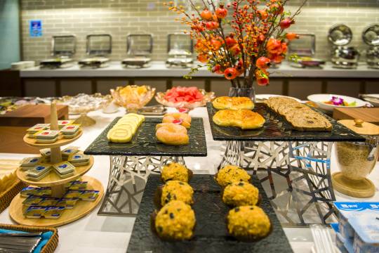商务出差首选,酒店设施不算太新,设施智能,语音控制灯光窗帘很便捷,躺在床上也可以一键开门,前台说帮忙免费升级了房型,房间有一张方桌,对于出差人事很友好。早餐品种丰富,有现磨咖啡,厨师大姐给推荐的牛肉面很好吃👍