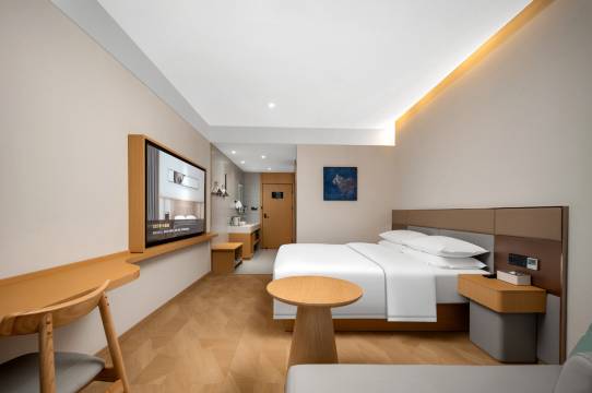前台人员服务也很热情,商旅出差也很方便,因为房间很大,还有桌子,木质家具也很温馨