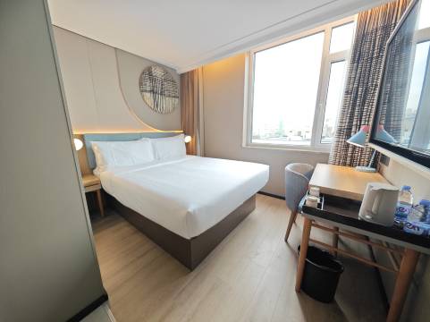 “这次入住体验绝了! 房间一尘不染,床品软到像睡云朵,连角落都透着干净。前台小姐姐超贴心,主动推荐周边美食还帮忙叫车。WiFi速度快到飞起,浴室干湿分离超实用!最惊喜的是凌晨回来还有夜宵送,老板亲自送的姜茶暖到心坎里~位置也绝,步行5分钟到地铁站,周边便利店小吃店超多。已经安利给同事,下次出差还选这!强烈推荐给追求性价比和服务的宝子们!”