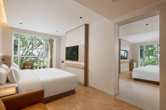 前台服务好,主动给我们换的更大点的房间,房间卫生干净,设施很新,卫生间干湿分离。很安静,房间隔音挺好,不影响睡眠。