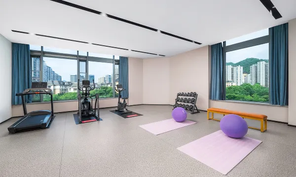 双床房,环境很好,设备比较新,并且风景优美。地下停车场充电很方便。外卖由机器人送上来,还是保证有隐私性的。4楼配备了健身房和洗衣房。