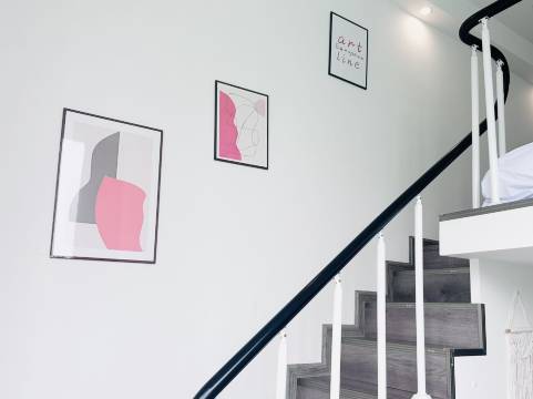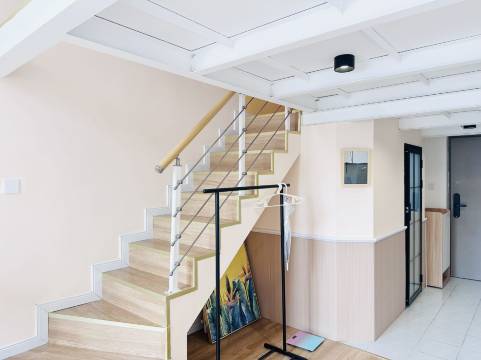 设施:两层挑高,第一层面积不大,第二层只有一个床床头柜和衣架,空调一层不是太暖和,二层暖和一点,设施整体比较齐全