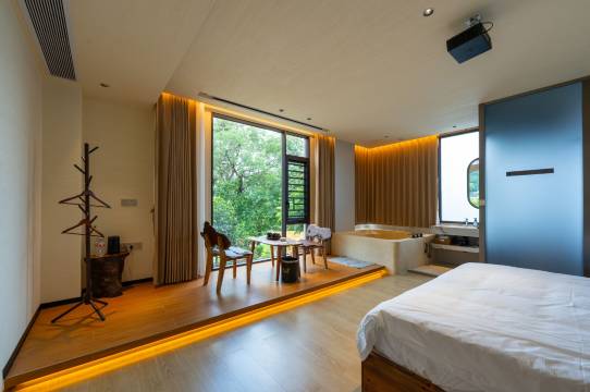 民宿装修别具一格,很有禅意自然风,房间非常清新,原木风,温泉水质超好,泡完非常舒服。