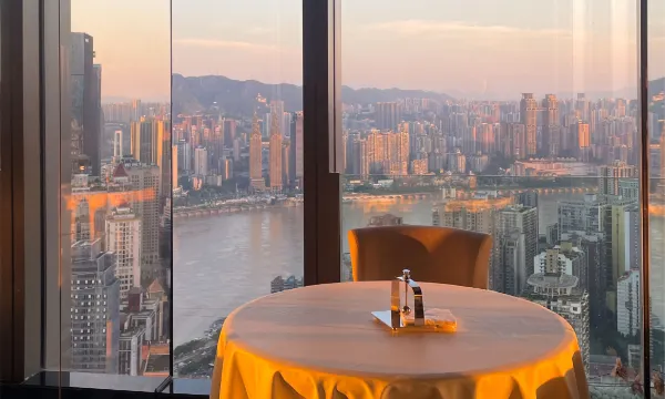 坐落重庆朝天门腹地,TOP 级高空江景酒店。高空尽览来福士、两江交汇与渝中半岛全景。近解放碑、长江索道、洪崖洞,邻地铁1号线朝天门站。每间房皆江景房,大落地窗随拍即大片。6部独立电梯、24小时健身中心,100寸投影,4K超清电视等高端配置,美国金可儿床垫、法国 DAMANA 洗护,奢享惬意旅居,尽享重庆魅力!