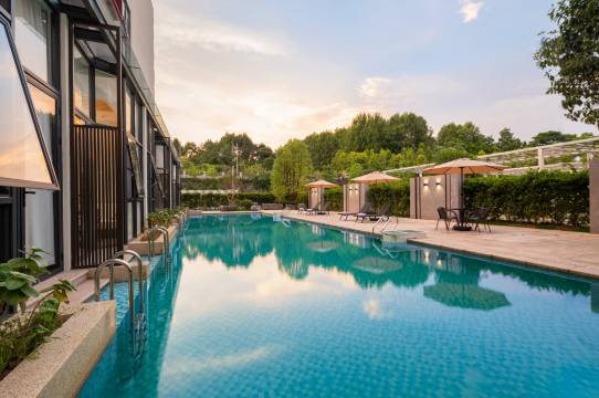 卫生干净,房间舒适,可能在法院后面环境不错较宁静,有个泳池,虽不算大,还好。停车场大,有充电桩,但无慢充。早餐品种比较多。总体不错。