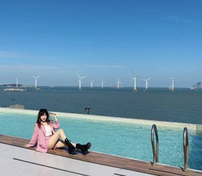太喜欢日出房了,每天睁开眼睛就看到风车田➕无敌海景。附近有共享电车,电量完全够用。打车滴滴很方便,自驾的话有停车场和充电桩。阿姨每天可以帮忙更换毛巾清理垃圾。老板还可以帮做冰美式,太爽了