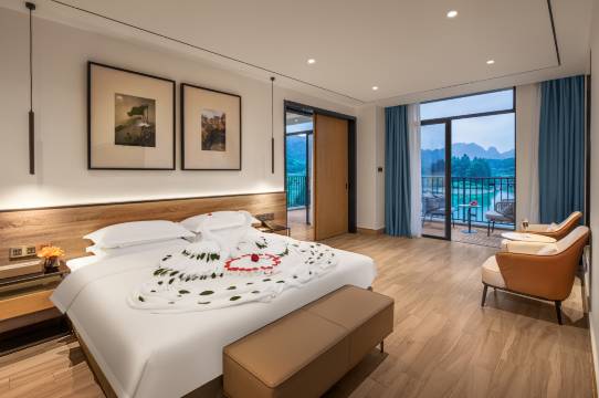 房型配有湖景阳台,景色怡人。设施较新,整体干净整洁,适合带父母和孩子家庭出行。酒店配有泳池和温泉,服务人员态度热情。