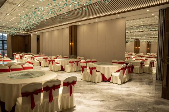 酒店位于孝感市孝昌县小河镇观湖路特一号。坐落于S243与小观线交叉路口往东北侧的位置。集住宿、餐饮、会议、休闲度假、娱乐为一体的综合型、智能化商务酒店。酒店总面积3.5万平方米,为不同类型的顾客量身定制了多间陈设精美、风格各异的豪华间与套房。酒店有各种类型中餐包厢多间,下设大、中、小,多个类型的包房。适合婚庆寿宴、亲友相聚等各项活动。餐饮以湖北菜和本地特色菜相结合的方式定位。酒店配有贵宾厅和多功能厅等,同样满足您的商务需求。