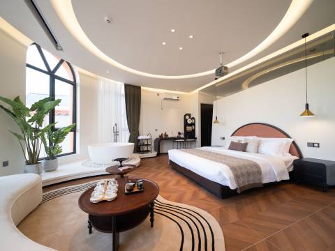 民宿位于新疆维吾尔自治区伊宁市喀赞其民俗旅游区内,临近汉人街和人民广场,是一家具有新疆少数民族特色的民宿。其建筑风格融合了新疆少数民族特色与现代设计,每间客房的风格和色调都经过精心搭配设计,且配套设施齐全,采用全屋智能语音控制、电动窗帘、零压床垫、羽绒被、羽绒枕、智能马桶及浴缸等。 在这里,游客可以体验到浓郁的新疆民俗风情,感受当地的文化特色。此外,民宿周边还有许多值得一游的景点,如六星街、喀赞其民俗村等。