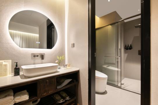 携程上无意订的亲子套间,靠近潮宗街,各种小酒馆林立,楼下觅食逛街非常方便,适合citywork。酒店前台热情,因行程改变,老板还给免费续了两三小时,房间干净卫生朝阳,装修复古又现代,房间智能语音控制,智能马桶,体检感很好,下次还会选择