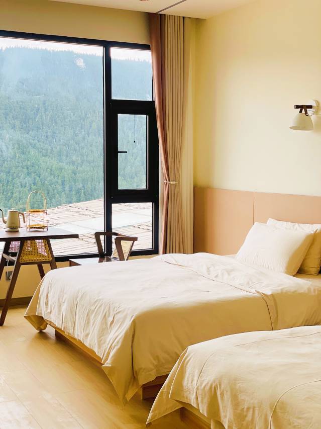 带老婆出游,一路住了很多酒店民宿这家是最满意的,卫生干净,本来以为和图片不是很像,住进来才发现比图片上的好,老婆半夜有点高反,老板开车去县城给买的氧气瓶,真的很贴心,我们行李箱有点多都是老板给扛上来的,唯一可惜的没预约上老板的观景大床房,住的是亲子间,床也很大一张一米八一张一米五的是我在甘南住的亲子间最大的床了,床品四件套用的都是鹅绒裸棉的,和之前住的亚朵有的一拼了,房间还备用了女性急需用品,老婆说冲着几点必须给个好评,值得推荐。