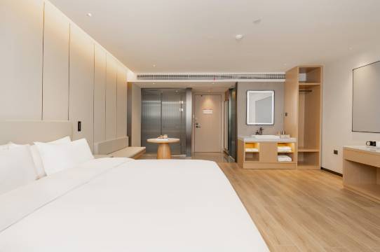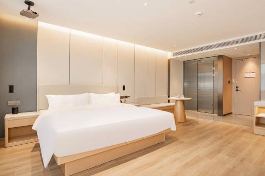没想到这个价位能住到这么棒的酒店!性价比直接封神~ 位置不算偏,周边有超市和小吃街,生活便利。房间虽然不算超大,但布局紧凑不拥挤,储物空间充足。卫生做得很到位,床单被卫生间干湿分离。床睡得很舒服,隔音效果超出预期,