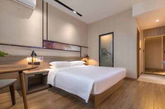 已经是常客了,每次住进去都很满意,环境很不错,房间明亮,床垫软,床很大而且干净卫生,厕所无异味。电视是好的可以看。空调灵敏,不冷也不热。完全超值!